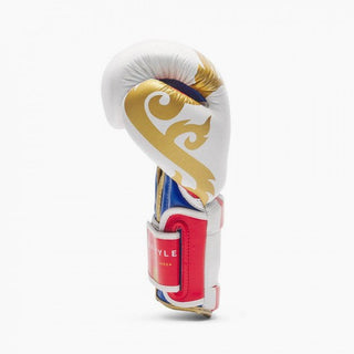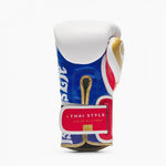 Les Gants de boxe Leone Thai Style GN114 sont un modèle conçu pour le Muay Thai, l'art des huit membres. Fabriqués en cuir, ils sont dotés d'une fermeture velcro, étudiée pour offrir un serrage optimal au poignet, et d'un rembourrage pour parer les coups de pied et les genoux de l'adversaire. La combinaison de couleurs de ce modèle rappelle les couleurs du drapeau thaïlandais.