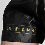 Les Shorts Leone DNA AB966 sont des shorts pour Kick boxing et Muay Thai qui se distinguent par la combinaison de couleurs noir-or, présente dans toute la collection DNA. Réalisés en satin, ces Shorts sont brillants, audacieux et résistants. Parfaits à la fois pour les entraînements et les combats, ils sont dotés d'une Ceinture élastique haute et de fentes sur les côtés. Les grandes inscriptions dorées se détachent sur le satin noir et donnent aux shorts une personnalité forte et définie. Parfaits pour un look percutant.